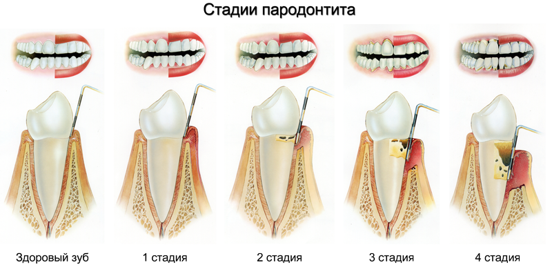 В начале развивается гингивит, способствующий патологическим изменениям в более глубокорасположенных тканях. Впоследствии возникает необходимость удаления одного или нескольких зубов, нарушается прикус, а при серьезных осложнениях снижается слуховая способность.